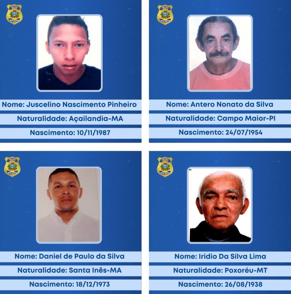 Os nomes abaixo já foram, mas os familiares ainda não foram localizados. Caso alguém reconheça ou acredite ter informações, a orientação é procurar o Instituto Médico Legal (IML) ou entrar em contato no telefone (65) 98108 – 0036. A lista completa está disponível no site da Politec.