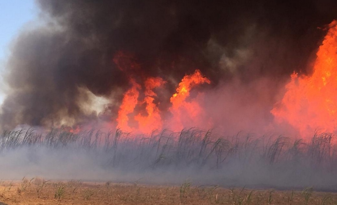 As chamas atingiram uma área que já vinha sendo colhida. Dos 1,2 mil hectares plantados apenas 300 haviam sido colhidos.