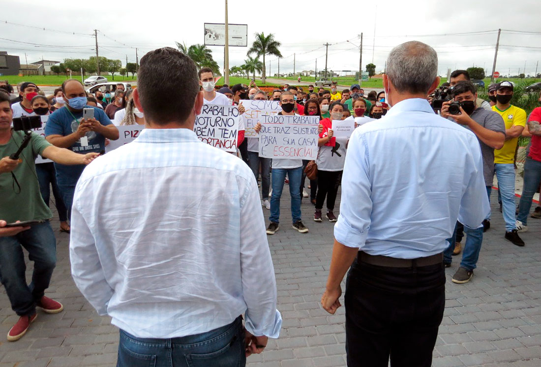 “O trabalho noturno também tem importância”, “todo trabalho que traz sustento para sua casa é essencial”, manifestaram, em cartazes e querem, aos sábados e domingos, algumas horas a mais para trabalhar (restaurantes e lanchonetes podem funcionar até às 14h).