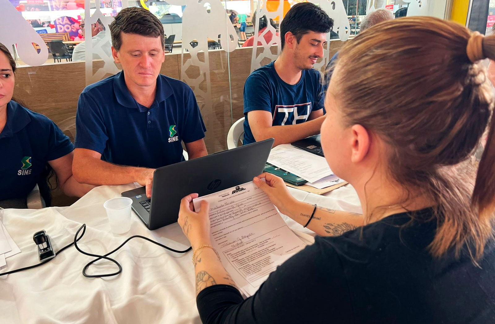 Diversas pessoas passaram pelo local, para conferir as vagas e fazer a triagem. Os interessados devem levar documentos pessoais e caso não tenha currículo em mãos, a equipe da pasta de Trabalho, junto com a do SINE, estarão auxiliando na confecção.