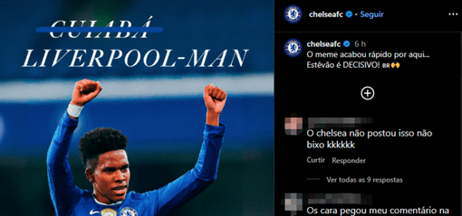 O Chelsea usou as redes sociais para brincar com meme dado a Estêvão por torcedores brasileiros. O atacante, ex-Palmeiras, era chamado por críticos de “Cuiabá man”, como forma de dizer que ele não decidia jogos importantes. Os Blues aproveitaram a situação após o jogador fazer o gol que deu a vitória da equipe por 2 a 1 sobre o Liverpool, no último sábado (4), pela Premier League.