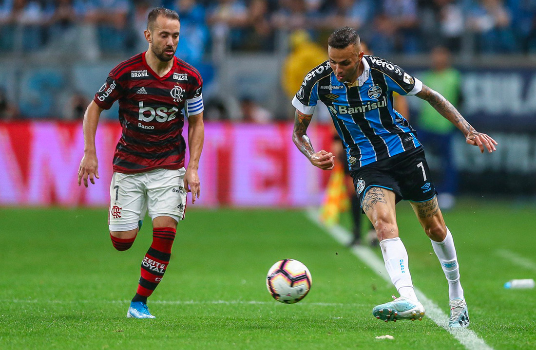 O jogo – O Flamengo não deixou o Grêmio esboçar qualquer pressão no início da partida e manteve a posse de bola. Com muitas trocas rápidas de passe, os rubro-negros quase abriram o placar aos oito minutos. Arrascaeta recebeu passe na área e chutou cruzado próximo ao gol. No minuto seguinte, Bruno Henrique arriscou de longe e assustou Paulo Victor.