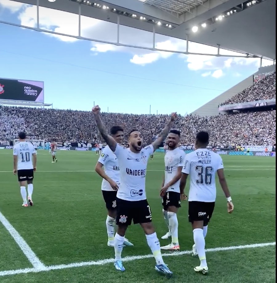 Aos 32, Maycon tocou de cabeça e, com a defesa da Lusa desorganizada, encontrou Yuri Alberto sozinho. Ele levou a bola até a área e chutou na saída do goleiro para balançar as redes.