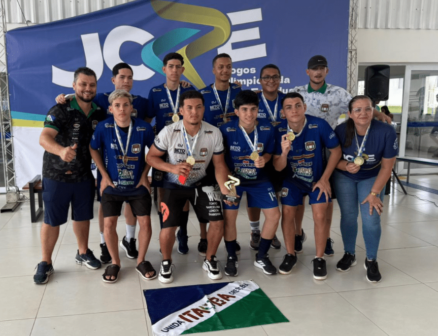 Em um ano histórico para o futsal masculino Sub-17 de Itaúba, a equipe conquistou o título estadual do JORE – Jogos da Rede Estadual, realizado em Cuiabá, este mês, confirmando uma campanha impecável e o excelente trabalho desenvolvido ao longo da temporada. Representando a escola Papa João Paulo II, o time teve desempenho dominante durante toda a competição. Na primeira fase, venceu Santo Antônio do Leverger (5 a 0), Sapezal (4 a 2) e Jangada (5 a 2). Na semifinal, aplicou uma goleada histórica de 10 a 0 sobre Paranatinga.
