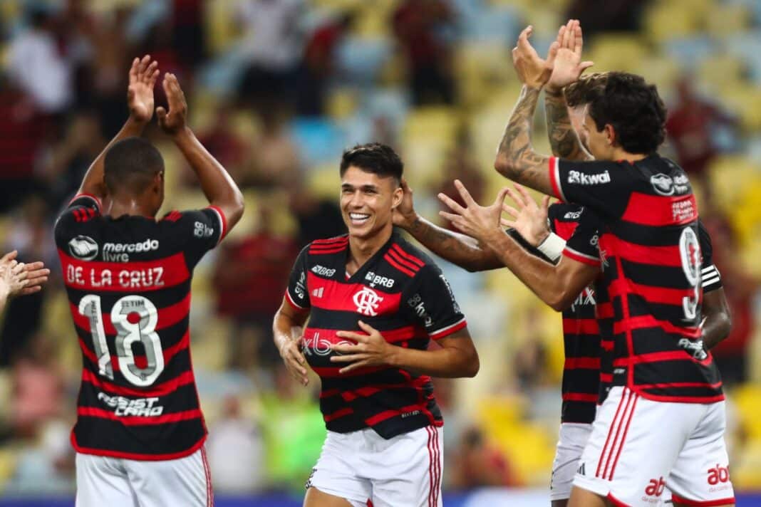 No minuto seguinte, não teve jeito. Pedro fez ótima jogada individual, deixando Pablo Maia no chão antes de bater no cantinho, forçando Rafael a fazer outra excelente intervenção. Mas, no rebote, De la Cruz estava bem posicionado para completar de primeira para o fundo das redes, fazendo 2 a 0 para o Flamengo.
