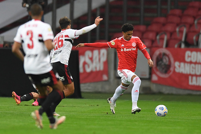O Internacional só foi responder aos 20 minutos, quando Caio Vidal recebeu pela esquerda, invadiu a área e tocou por cima na saída de Tiago Volpi, mandando por cima do travessão. Dois minutos depois, o atacante colorado novamente saiu cara a cara com o goleiro são-paulino, que desta vez fez grande defesa para evitar o empate.