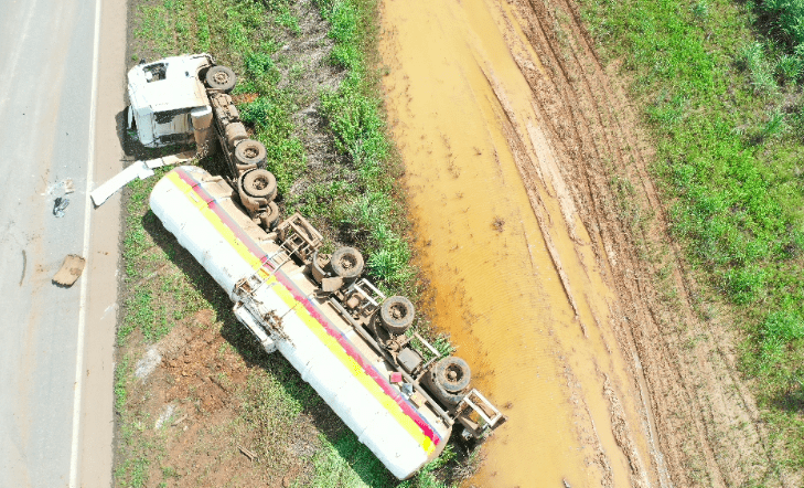 O acidente envolvendo um veículo de carga carregado com produto perigoso, não especificado, tombou, esta tarde, na BR-163, em Lucas do Rio Verde. O motorista foi socorrido pela concessionária que administra a rodovia com ferimentos leves e levado ao hospital.