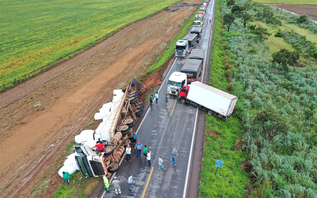 A carga da carreta que tombou foi derramada às margens da rodovia e o tráfego de veículos ficou totalmente bloqueado por algumas horas. À noite, de acordo com a PRF, foi normalizado.