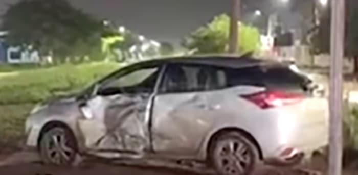 O carro chegou a ficar com a porta do lado esquerdo totalmente amassada e o para-brisa trincado. Já a Titan teve danos nas lanternas, luzes de seta, retrovisores e tanque.