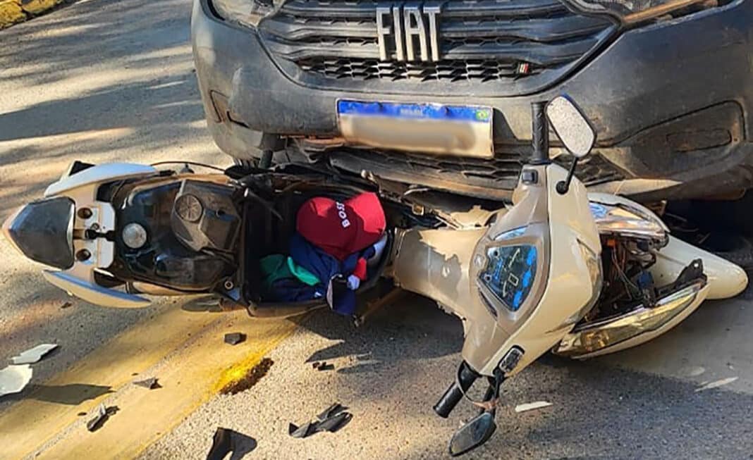As informações preliminares são que os veículos seguiam em diferentes sentidos quando houve o choque. A Biz chegou a parar em baixo de um dos automóveis, ocasionando danos às carenagens laterais e luzes de seta, além da perda do banco.