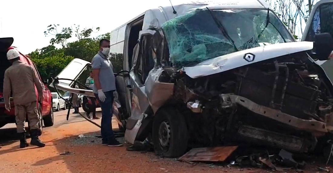 A colisão, no final da manhã, envolveu uma van Renault cinza e um caminhão na MT-457, em Jaciara (145 km ao Sul de Cuiabá). 12 pessoas ficaram feridas e estão no hospital da cidade. Elas foram socorridas pelo SAMU e a Polícia Militar informa que nenhuma corre risco de morte. Os motoristas tiveram ferimentos leves.