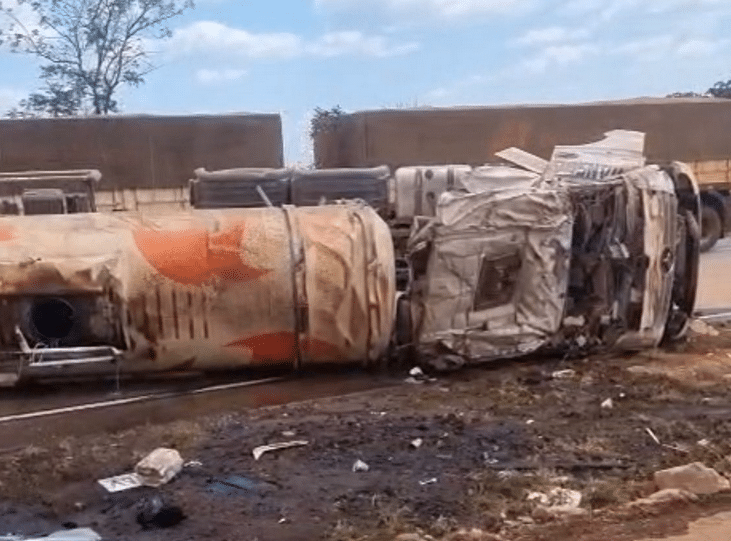 Carreta carregada com diesel tomba em rodovia de Mato Grosso e deixa um morto
