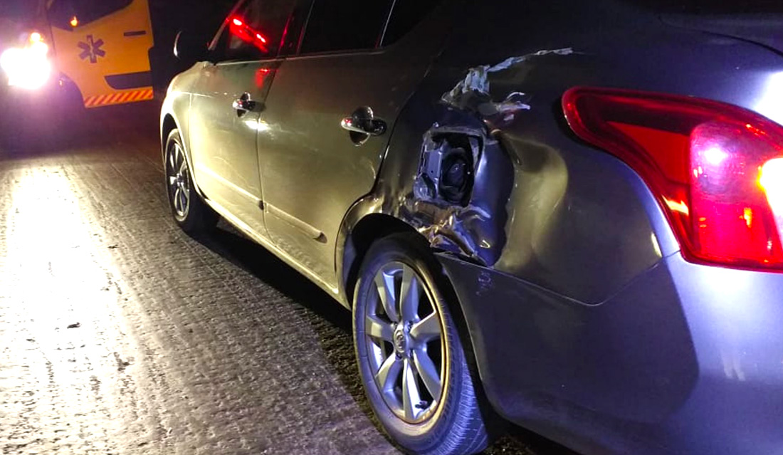 Com o impacto, a moto ficou lateral da pista onde não tem acostamento e o Nissan parou na pista. Metade do rodovia ficou interditada até o atendimento ser concluído e o tráfego ficou muito lento. A moto atingiu o carro na lateral traseira. A Polícia Rodoviária Federal (PRF) foi chamada para atender essa ocorrência.