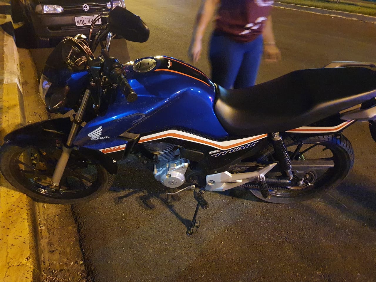 Duas pessoas ficaram feridas, esta noite, em um acidente de trânsito no centro de Sorriso. As vítimas estavam em uma motocicleta Honda Titan azul, quando se envolveram em uma colisão com uma caminhonete.