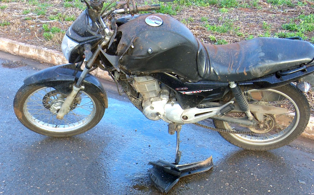 Com o impacto, a motocicleta teve danos na parte da carenagem, o guidão entortou e algumas peças ficaram no chão. Não foi confirmado se o veículo foi apreendido.
