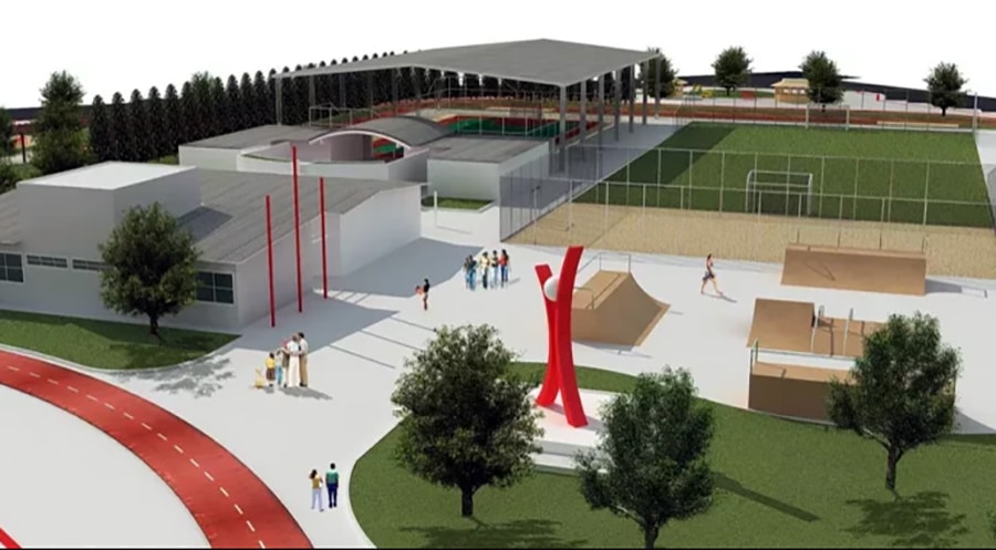 O projeto terá 6,5 mil metros quadrados de área construída e será subdividida em pista de caminhada, quadra de areia, pista de skate, campo de futebol, área de salto a distância, instalações de teatro, setor administrativo e de armazenagem. A localidade também contará com ampla espaço coberto, onde funcionará estacionamento para carros e motocicletas.