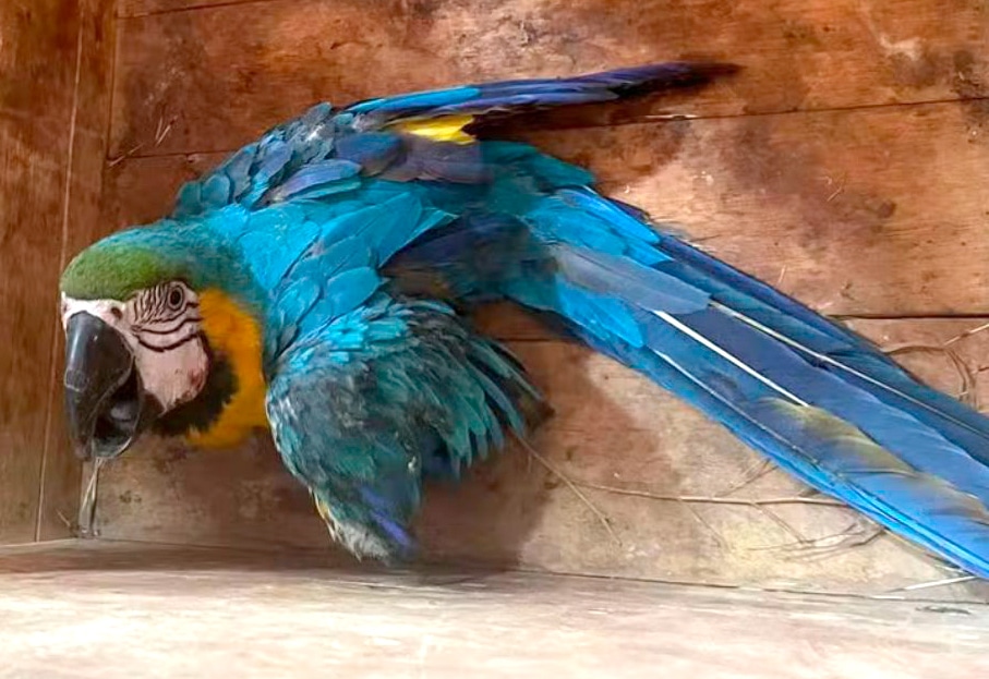 O exemplar de arara-canindé (Ara ararauna) foi entregue ao Corpo de Bombeiros, ontem à noite, na 7ª Companhia Independente em Alta Floresta. Um morador local, responsável pelo resgate, alegou que teria encontrado a ave caída e incapaz de levantar voo.