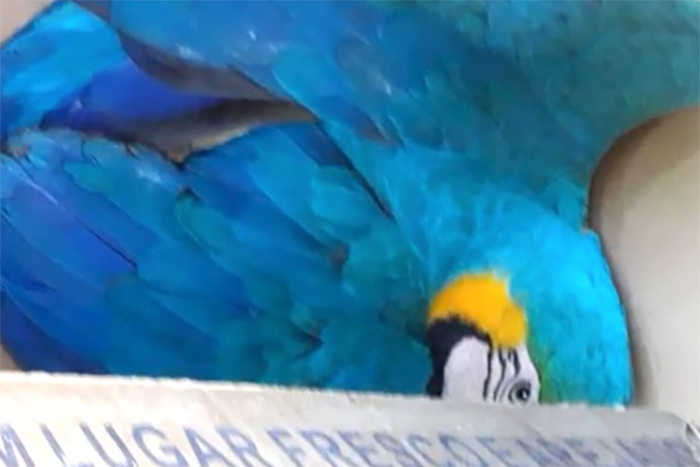 A arara foi encontrada, hoje, na lateral da BR-163, nas proximidades do bairro Camping Clube. Os servidores da secretaria de Estado de Meio Ambiente foram acionados, encaminharam o animal ao Hospital Veterinário da Universidade Federal de Mato Grosso, mas já chegou em óbito, com hemorragia aguda. O tiro atravessou o corpo, rompeu o pulmão e a artéria aorta.