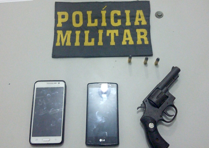 Arma e celulares roubados apreendidos em Rondonópolis - fevereiro 2016 (ass)