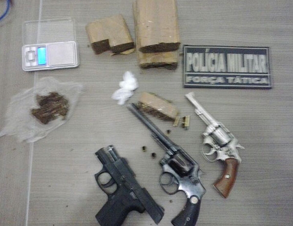 Armas e droga apreendidos com menores que balearam policial em Paranaíta (ass)