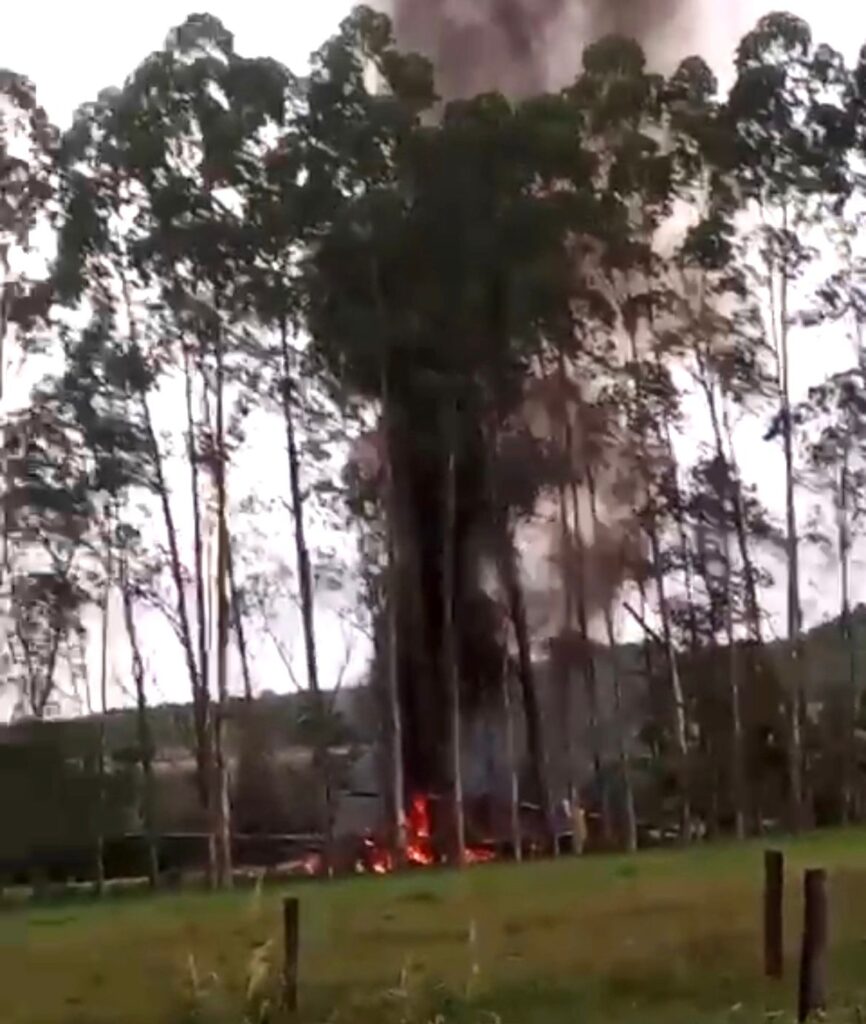 Imagens registradas por testemunhas mostram o momento em que as chamas consomem a aeronave e uma enorme ‘nuvem’ de fumaça se espalha. Um caminhão-pipa foi usado para apagar as chamas.