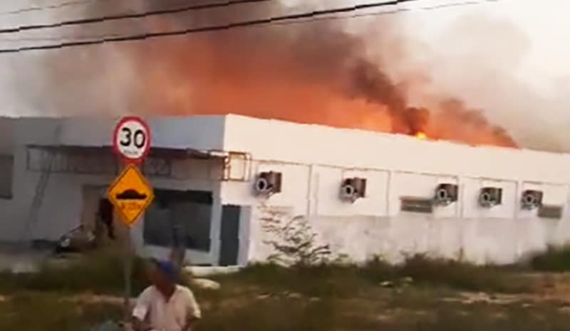 Um barracão da Caixa Econômica que está em construção pegou fogo, ontem à tarde, na avenida Itamar Dias, no município de Peixoto de Azevedo (197 quilômetros de Sinop). Terceiros que passaram pelo local registraram o momento em que o fogo se alastra na edificação e se forma uma grande nuvem de fumaça.
