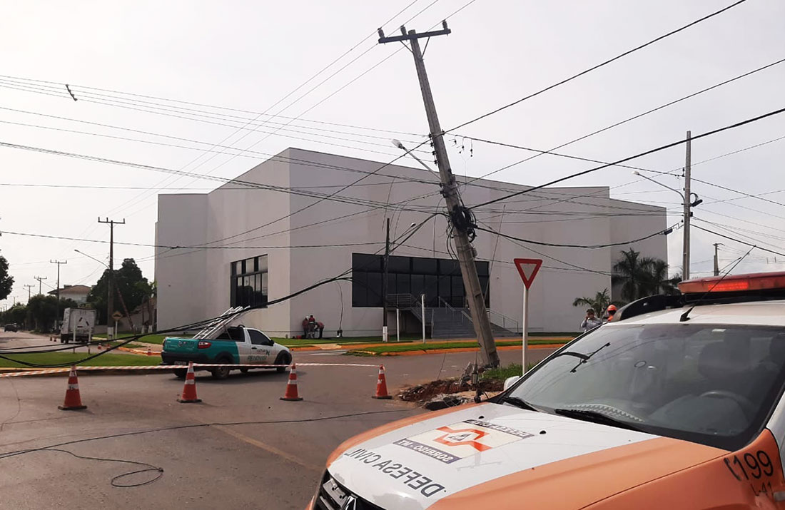 Uma Volvo HF 440 branco atingiu, esta manhã, um poste de concreto da rede de energia elétrica, na avenida dos Imigrantes na divisa entre os bairros Bela Vista e Jardim Europa. Os dois bairros Flor do Cerrado, Colinas e Santa Bárbara também ficaram sem energia.
