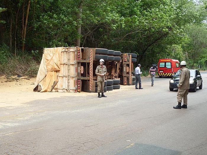 Bitren carregado com soja tomba na BR-358 próximo de Tangará da Serra – novembro 2015 (Heverton Luiz/Rádio Pioneira)
