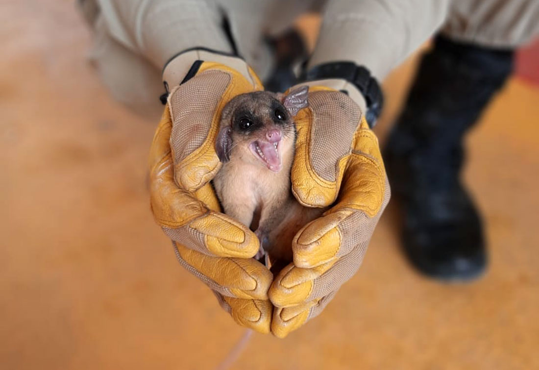 A equipe fez a captura e em seguida encaminhou o animal para uma reserva florestal. O marsupial não apresentava ferimentos.