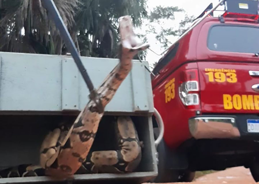 Segundo os bombeiros, o animal estava agressivo e foi utilizado um cambão para fazer a captura. Ninguém ficou ferido. Ambas as cobras não apresentavam ferimentos e foram levadas para uma área de mata, onde foram soltas.