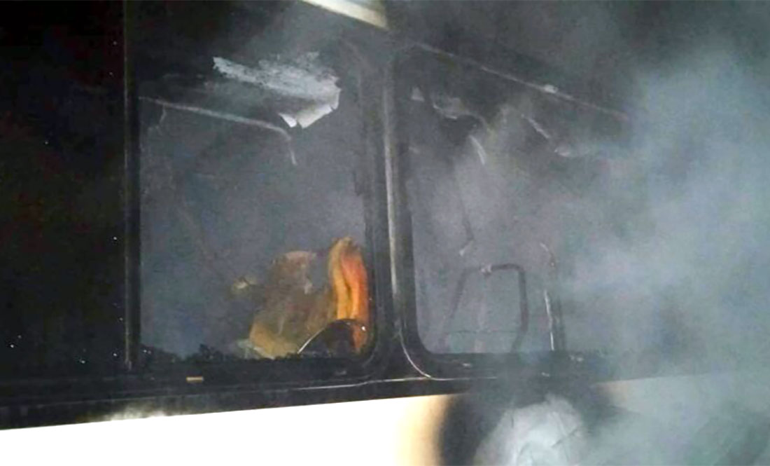 A versão apurada inicialmente é que o fogo teria começado no freio traseiro esquerdo e consumiu aproximadamente 30% do veículo, queimando cerca de quatro fileiras de banco da parte traseira.