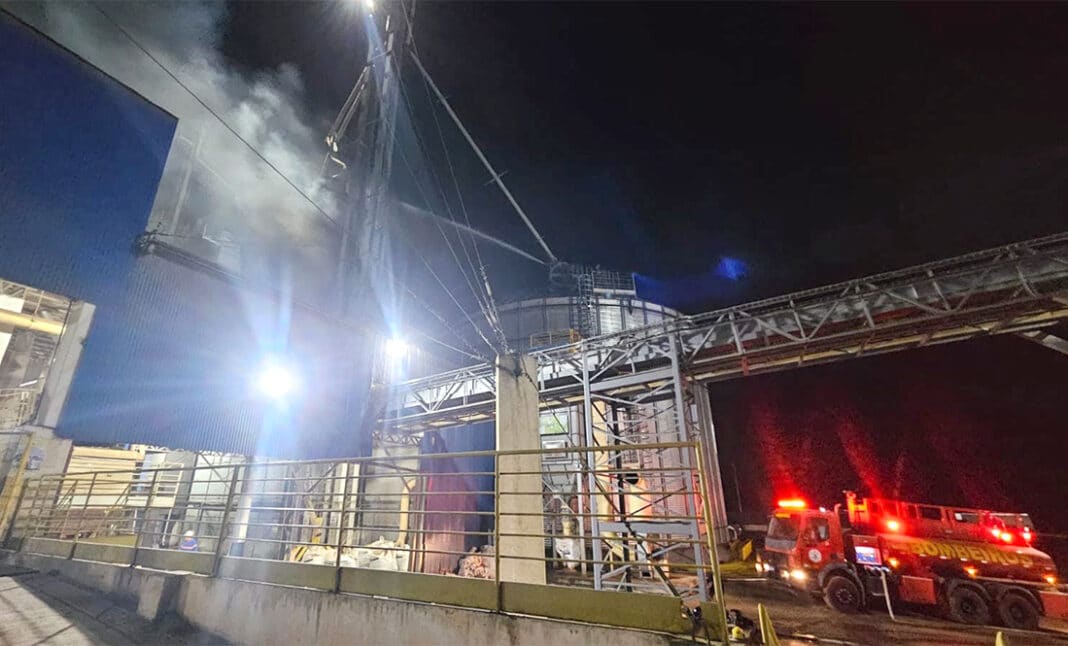 Bombeiros combatem por mais de 10 horas incêndio em silo no Nortão
