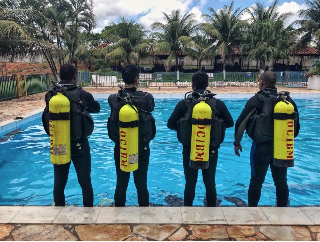 Foram repassados aos bombeiros que irão compor as equipes os princípios de mergulho, normas de segurança, padronizações de equipamentos e procedimentos a serem adotados na ocorrência de mergulho.