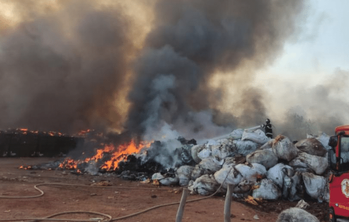A equipe do 1º Batalhão foi acionada por volta das 13h pelos funcionários da empresa de tratamento de resíduos, que informaram que o incêndio iniciou na área de vegetação nas imediações da empresa e já avançava para o pátio.