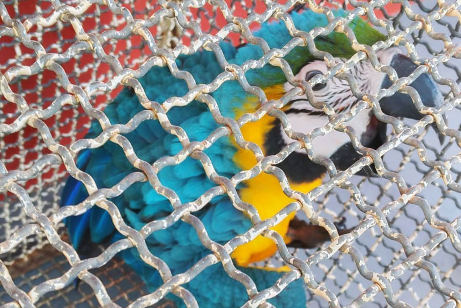A arara-canindé foi encontrada na frente de uma residência, esta manhã, no bairro Jardim Botânico. A moradora fez o acionamento do Corpo de Bombeiros, que fez a captura. Não foi detalhado se apresentava algum tipo de ferimento.