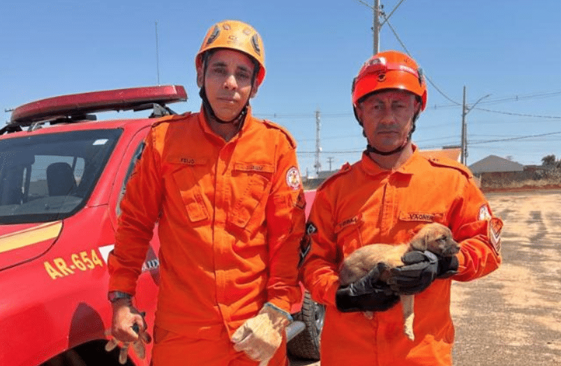 Bombeiros militares resgataram hoje um um filhote de cachorro que estava preso dentro de um bueiro no Loteamento Ônix, em Pedra Preta (a 241 km de Cuiabá).