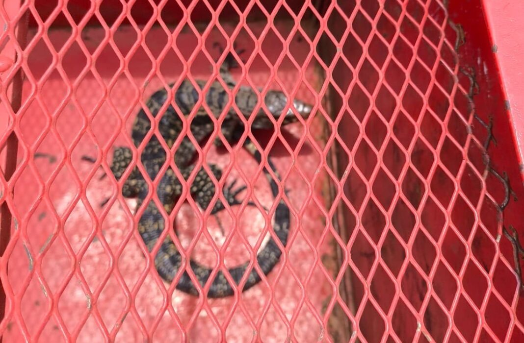 Os militares utilizaram um cambão, que consiste em uma ferramenta de contenção. Após a captura, o Teiú foi transportado e solto em seu habitat natural.