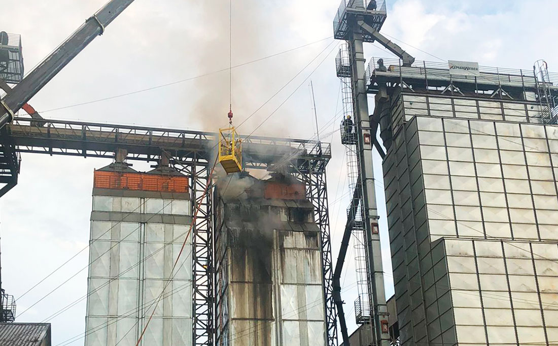 O silo estava totalmente cheio, com cerca de 150 toneladas de soja. Os grãos continuaram queimando internamente e as equipes continuaram trabalhando com duas linhas de mangueiras para realizar o resfriamento do produto na parte interna.