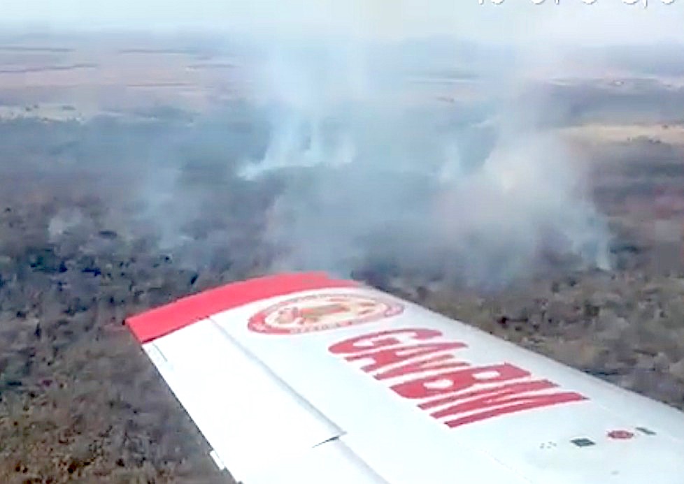 Bombeiros utilizam aeronave para conter queimada em Mato Grosso