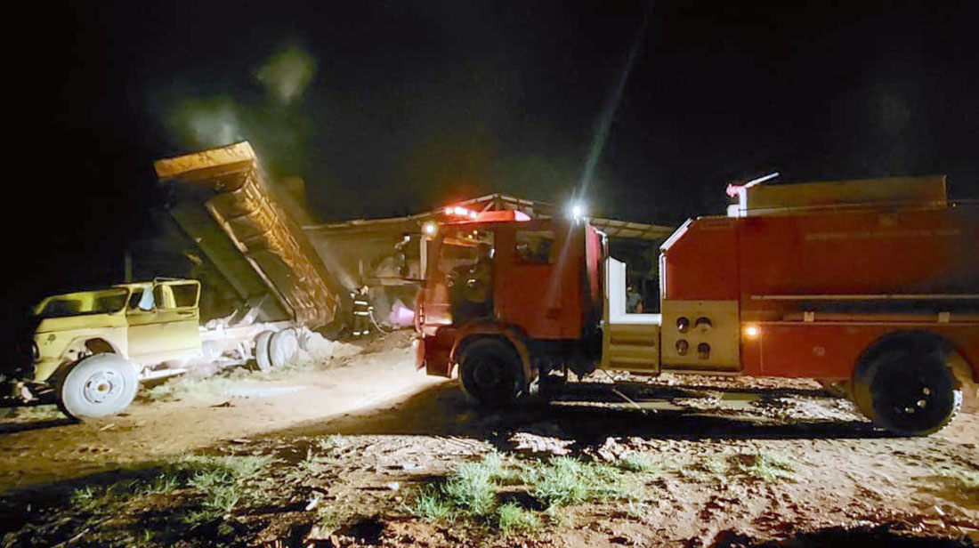 Os militares do Corpo de Bombeiros fizeram, ontem à noite, combate de um incêndio numa empresa de fabricação de tijolos, localizada na região da Comunidade Aliança, em Guarantã do Norte (233 quilômetros de Sinop).
