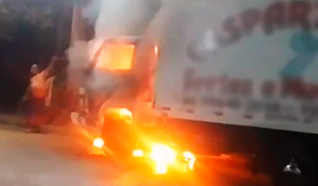 Caminhão baú pega fogo em Colíder