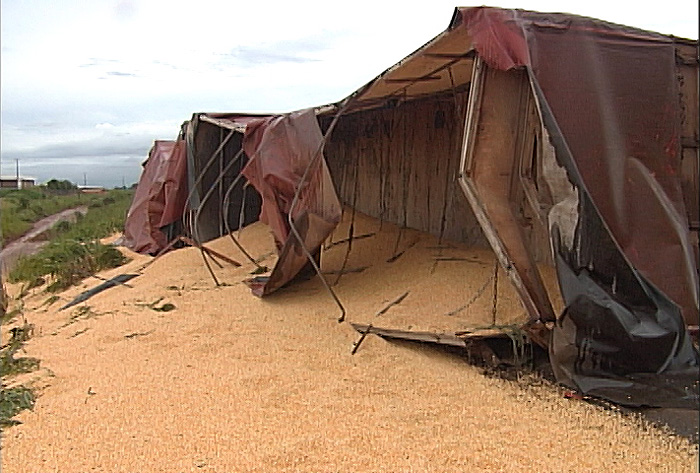 Caminhão de milho tomba na BR-163 em Sorriso 1 (ba