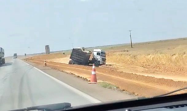 Caminhonete bate na traseira de caminhão na BR-163 em Lucas; carreta sai da pista