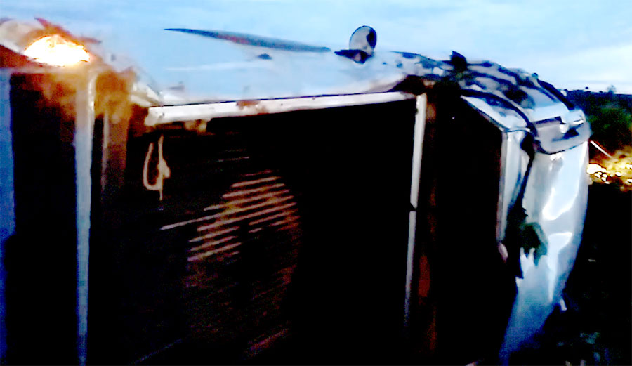 A versão apurada é que perdeu o controle a direção e capotou, parando em uma ribanceira. A caminhonete ficou bastante danificada.