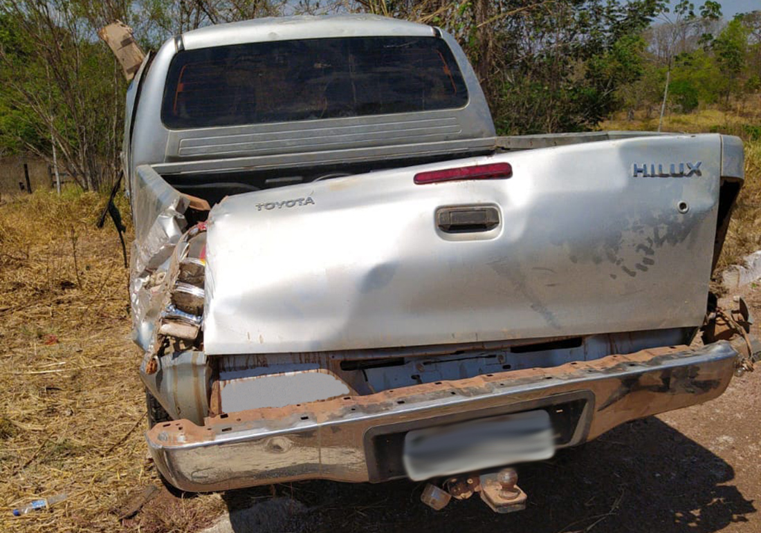 A caminhonete ficou completamente danificada.