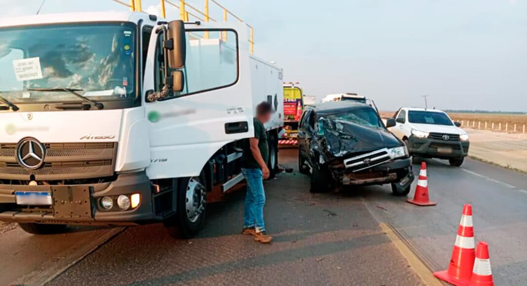 A equipe operacional detalhou, em nota, que a caminhonete teria se chocado na traseira do caminhão, mas as circunstâncias exatas não foram apuradas. Com o impacto, a SW4 teve partes do para-choque, para-lama, capô, faróis e rodas danificadas. Já o Atego ficou somente com algumas avarias na área atingida.