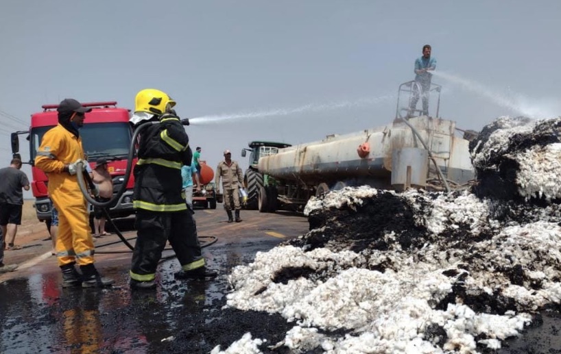 A carga possuí seguro e a carreta não chegou a ser atingida. Os bombeiros utilizaram um Caminhão Auto Bomba Tanque e 25 mil litros de água para controlar as chamas. Fazendeiros também ajudaram no controle e encaminharam caminhão pipa e pá carregadeira ao local.