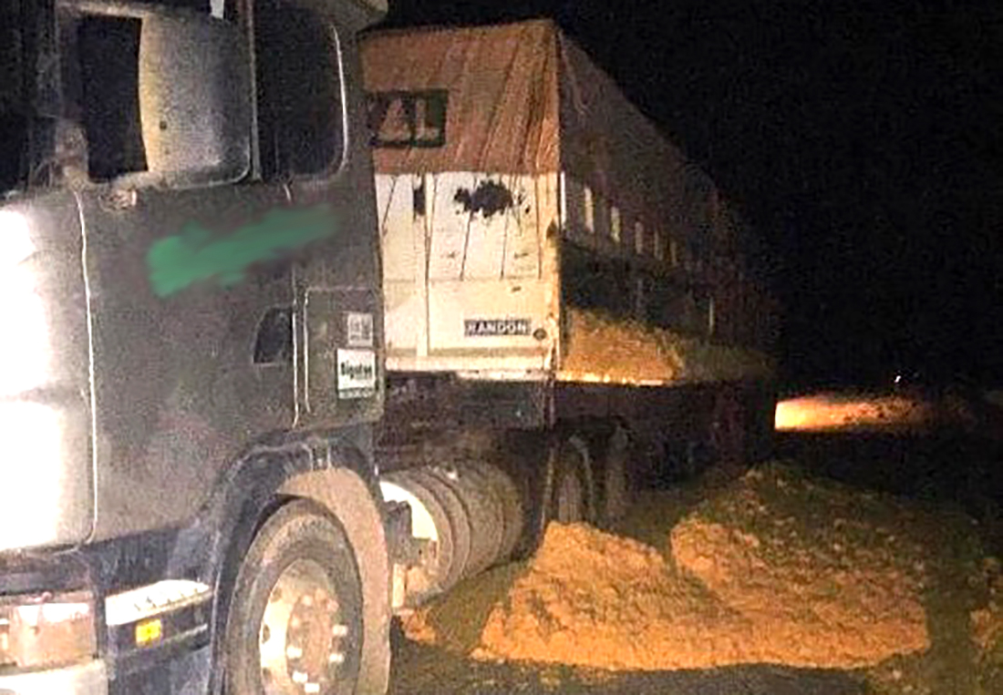 Parte da carga de farelo de milho ficou esparramada sobre uma das pistas da MT-320, nas proximidades da comunidade Café Norte, em Colíder (157 quilômetros de Sinop), ontem à noite. De acordo com a guarda de Trânsito, uma das vias ainda está interditada e funcionários de uma empresa estão fazendo a limpeza. Não há previsão de liberação.