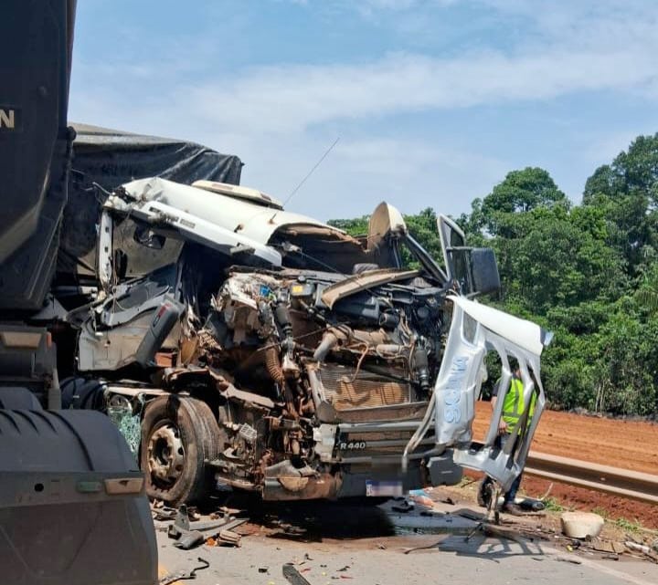 Uma grave colisão envolvendo duas carretas Scania R440 e R550, ocorreu há poucos instantes, no trecho da BR-163 no km 813, entre Sinop e Sorriso. A equipe de resgate da concessionária Nova Rota do Oeste foi acionada às 10h34. Nenhum dos motoristas se feriu.