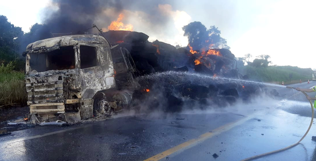 A pista ficou totalmente interditada durante os trabalhos. Não há informações de como as chamas começaram.